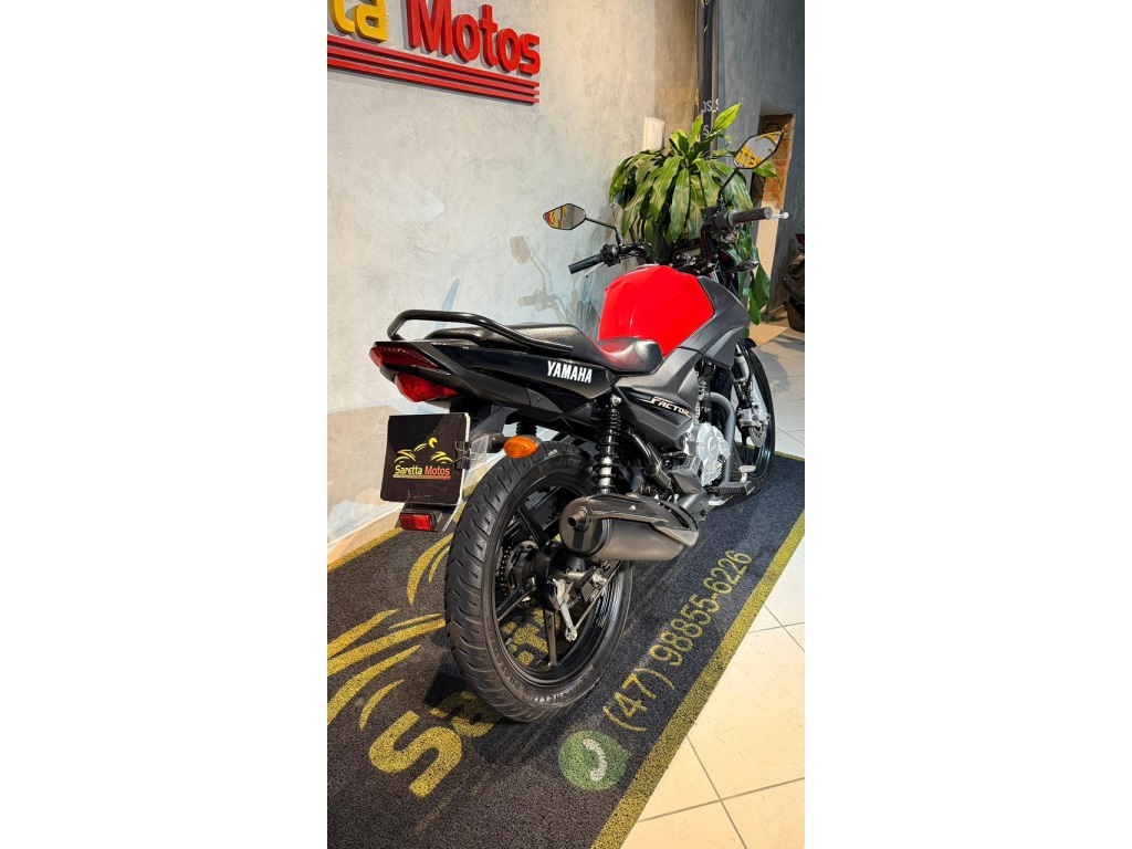 Yamaha Factor 125i ED 2023 – VermelhaEconômica, confiável e perfeita para o dia a dia.Uma das motos mais buscadas para trabalho e mobilidade urbana.Motor 125cc com injeção eletrônica BlueFlexFreio a disco dianteiro com sistema UBS (freio combinado)Painel analógico com visor digitalPartida elétricaExcelente autonomia (tanque ~15L)Baixo custo de manutençãoÚnico dono